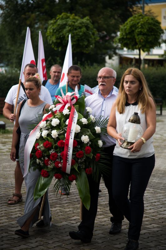 ![]() Tak jak to było zaplanowane w dniu 30 sierpnia odbyła się uroczystość 39 rocznicy powstania NSZZ „Solidarność” zorganizowana przez Międzyzakładową Organizację Związkową NSZZ „Solidarność” w MAN BUS. Związkowcy z zakładów, które MOZ obejmuje swoim działaniem, a więc MAN BUS, PKC GROUP i APLEONA, a także zaproszeni goście spotkali się pod Biurowcem Głównym MAN-a. W uroczystości udział wzięli działacze związkowi z lat 1980 – 1989: Jacek Sadowski – internowany 13 grudnia 1981 roku i przetrzymany w więzieniach w Kielcach i Nowym Łupkowie (po zwolnieniu wyemigrował do Francji), Jerzy Nobis - internowany 13 grudnia 1982 roku i przetrzymywany w więzieniach w Kielcach, Nowym Łupkowie i Załężu, uczestnik dziesięciodniowej głodówki (po zwolnieniu wyemigrował do Francji), Edward Dudek aresztowany w 1982 roku i skazany na 2 lata więzienia, Adam Krupa – w 1982 roku powołany do jednostki karnej w Czerwonym Borze, Leszek Nowak - internowany w 1982 roku, a po zwolnieniu powołany do jednostki karnej w Czerwonym Borze oraz Piotr Kępa członek Komisji Fabrycznej NSZZ „Solidarność” w FSC w 1980 – 1981 roku. Uroczystość rozpoczęło odśpiewanie hymnu „Solidarności”. Następnie okolicznościowe przemówienie wygłosił przewodniczący MOZ Jan Seweryn. List wojewody świętokrzyskiej Agaty Wojtyszek skierowany do uczestników uroczystości odczytał jej przedstawiciel Wiktor Kowalczyk. Głos zabrał także Jacek Sadowski rzecznik prasowy i redaktor pism niezależnych Komisji Fabrycznej NSZZ „Solidarność” w byłej FSC w latach 1980 - 1981. Po przemówieniach pod tablicą upamiętniającą związkowców z FSC złożono wiązanki i zapalono znicze. W imieniu wojewody świętokrzyskiej Agaty Wojtyszek wiązankę złożył Wiktor Kowalczyk a w imieniu Zarządu Powiatu Starachowickiego wiązankę złożył Jerzy Materk. Wiązanki złożyli także: Zakładowy Społeczny Inspektor Pracy w MAN Zbigniew Palacz, członek Europejskiej i Światowej Rady Zakładowej Volkswagen Mariusz Dzwonek, a także związkowcy z poszczególnych zakładów: z PKC GROUP wiązankę złożyli Maciej Maciąg, Wioletta Maciąg i Sylwia Mirota, z MAN BUS wiązankę złożyli Waldemar Maciąg i Mirosław Górecki, z APLEONA wiązankę składali Jan Radecki, Elżbieta Lech i Dariusz Kiepas. Znicz zapalił szef delegatury Marian Ferenc. W imieniu Międzyzakładowej Organizacji Związkowej NSZZ „Solidarność” w MAN BUS wiązankę złożyli: Małgorzata Żłobecka, Jan Seweryn i Andrzej Kępiński. Poczty sztandarowe naszych sztandarów stanowili: nowy sztandar: Marcin Płatek, Krzysztof Kleczaj i Stanisław Moroń, sztandar historyczny: Wojciech Kamoda, Krzysztof Fereniec i Grzegorz Gralec. Po tej części uroczystości uczestnicy wsiedli do autokaru i przejechali pod kościół Świętej Trójcy gdzie pod Obeliskiem Anny Walentynowicz również złożono wiązanki i zapalono znicze. Wiązanki złożyli: przedstawiciel wojewody Wiktor Kowalski i przedstawiciel powiatu Jerzy Materek. W imieniu MOZ NSZZ „Solidarność” wiązanki złożyli: Sylwia Mirota i Małgorzata Żłobecka, Jan Seweryn i Maciej Maciag. Znicz zapalił Mirosław Górecki. Przewodniczący Jan Seweryn w krótkim wystąpieniu przedstawił sylwetkę Anny Walentynowicz. Kolejnym etapem uroczystości był przejazd pod Kamień „Solidarności” i zapalenie zniczy. Wiązankę złożył Jerzy Materk, a znicz zapalił Jan Seweryn, który przypomniał co upamiętnia tak zwany Kamień. Następnie autokarem udano się na ulicę Radomską i w pochodzie, przy dźwiękach pieśni strajkowych przemaszerowano do kościoła Wszystkich Świętych. Tam Pod Pomnikiem Solidarności” złożono wiązanki i zapalono znicze. Wiązanki złożyli: przedstawiciel wojewody, przedstawiciel powiatu, a wieniec od MOZ NSZZ „Solidarność” w MAN BUS złożyli Jan Seweryn, Malgorzata Żłobecka i Violetta Maciąg. Znicz pod tablicą robotników zapalili Jan Seweryn i Maciej Maciąg. Modlono się w intencji NSZZ „Solidarność” i kolegów związkowców, którzy odeszli już na wieczną wartę: Edwarda Dajewskiego, Jerzego Wikierskiego, Adama Mazura, Henryka Bątkiewicza, Zbigniewa Rafalskiego, Halinę Strzelec, Michała Krzyżowskiego, Tadeusza Wiktorowskiego, Andrzeja Garbacza, Macieja Gruszczyńskiego, Marię Lipiec, Kamila Krakowiaka, Franciszka Michałka, Romana Wuja, a także za przyjaciół „Solidarności”: księdza Tadeusza Jędrę i księdza Józefa Domańskiego.