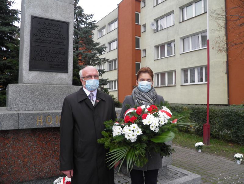 ![]() Napięta sytuacja epidemiczna spowodowała, że tegoroczne Święto Niepodległości obchodzone było inaczej niż co roku. Międzyzakładowa Organizacja Związkowa NSZZ „Solidarność” z MAN BUS uczciła je składając wiązankę pod starachowickim Pomnikiem Niepodległości. Wiązankę złożyli: przewodniczący Jan Seweryn i wiceprzewodnicząca Małgorzata Żłobecka.