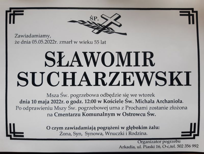 W dniu dzisiejszym w godzinach popołudniowych zmarł członek NSZZ "Solidarność" Sławomir Sucharzewski. Pracował w MAN na wydziale Montażu. Miał 56 lat.